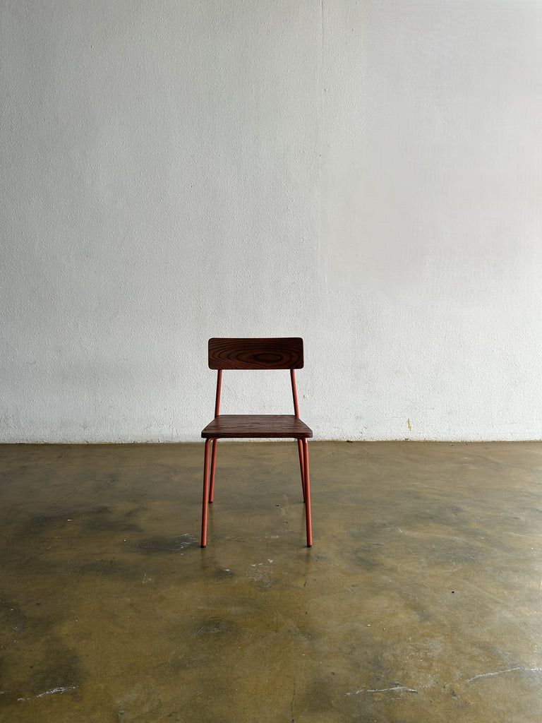 The chair in the fourth picture is finished in Red Stained Sungkai with Pink Powder Coated Mild Steel.
