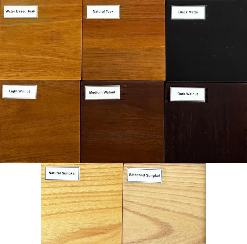 Specifications: Solid Teak or Sungkai, Multiple Wood Finishes.
