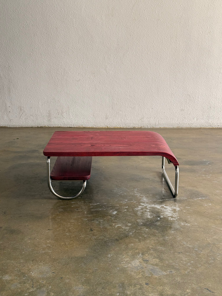 The coffee table pictured is in Red-Stained Sungkai with Tubular Stainless Steel Structure