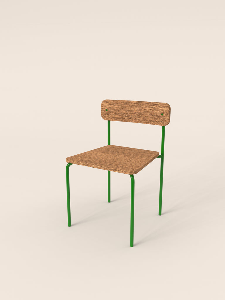 The chair in the seventh picture is finished in Natural Sungkai with Green Coated Mild Steel.