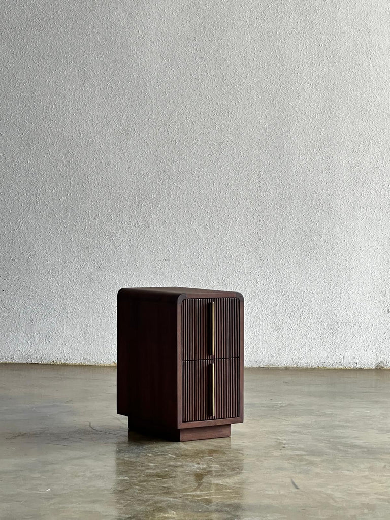 Bedside pictured is in Medium Walnut with Brass Hardware